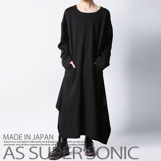 ワンピース メンズ ロング丈 カットソー長袖 モード系 ビッグシルエット マキシ チュニック ブラック 日本製 As Super Sonic As Super Sonic 通販 Yahoo ショッピング